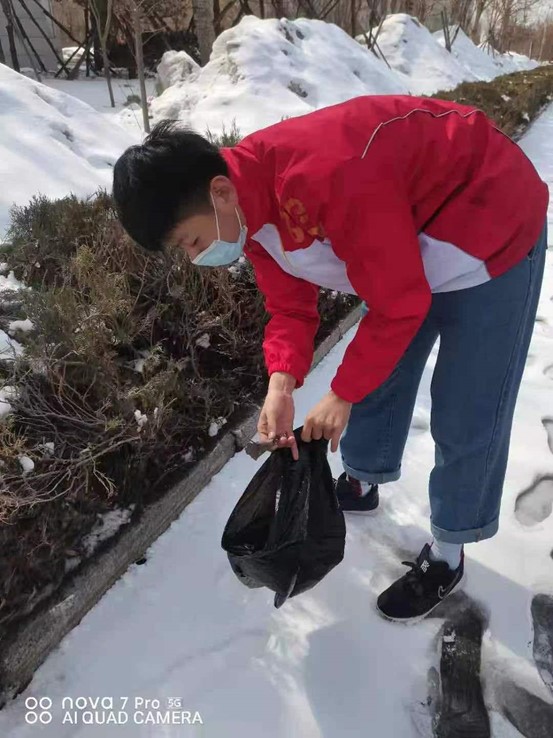 疫情防控下,志愿者们在做好防护的前提下开展活动。他们分工明确,兵分三路,拎着垃圾袋,沿着步道,沿途弯腰拾捡草丛和小道上的废弃物、纸巾、果皮、食品袋等各种垃圾。同学们不怕苦、不怕累、不怕脏,经过两个小时的辛勤劳动,市政林周边的环境焕然一新。虽然天气寒冷,冻得面红耳赤,但是每个人的心是暖的,收获的快乐洋溢在脸上。