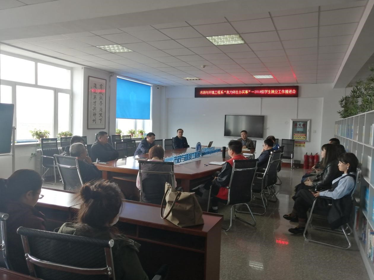 为落实全国2021届毕业生就业工作第二次调度会议精神及黑龙江省高校就业工作第一次调度视频会议精神,进一步推进我系2021届毕业生就业工作,确保毕业生高质量就业,市政与环境工程系于2021年4月16日在六楼会议室召开主题:市政与环境工程系“我为师生办实事”的2018级学生就业工作推进会。会议由系主任边喜龙主持,市政与环境工程系全体教师参加。