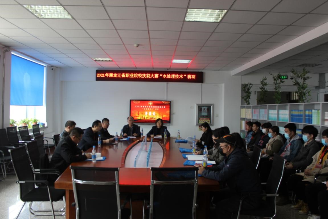 为贯彻落实《国家职业教育改革实施方案》有关精神,根据《2021年黑龙江省职业院校技能大赛实施方案》工作安排,引导学校积极开展高层次技术技能人才的培养,促进环境工程类、给排水工程专业理论与实践教学,加强校际合作与交流。2021年4月17日,2021年黑龙江省职业院校技能大赛“水处理技术”赛项在黑龙江建筑职业技术学院胜利召开,黑龙江建筑职业技术学院党委委员、宣传统战部长石海涛出席开幕式并致开幕辞,教育厅大赛巡视员袁冰滨、教务处副处长侯音、市政与环境工程系副主任吕君、于景洋参加开幕式,市政与环境工程系党总支书记刘颖主持开幕式。