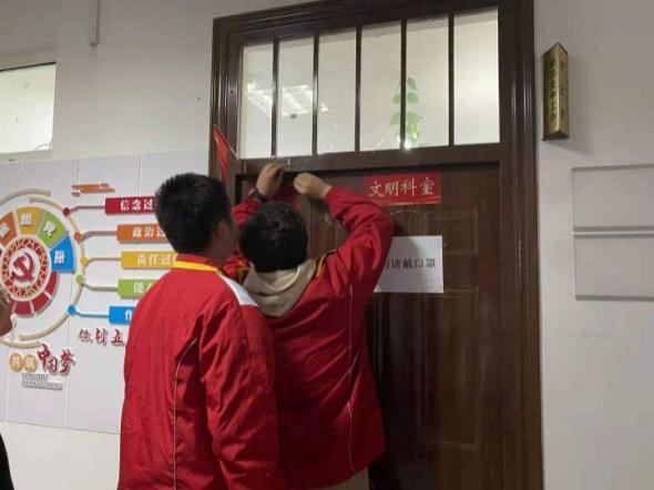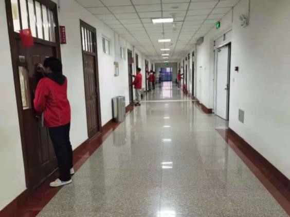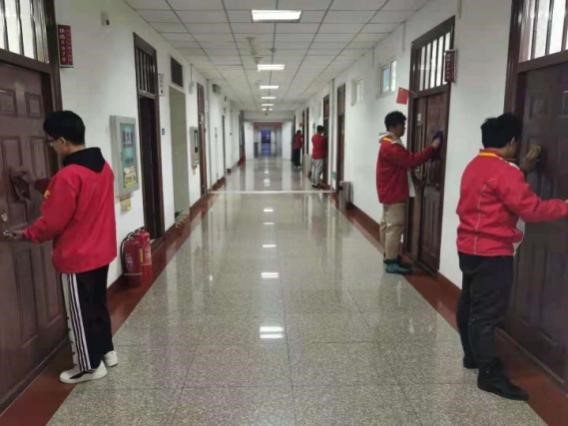 在傍晚斜阳的映衬下,市政系志愿者们在鲁班楼五楼、六楼的学习和教学区集合,拿着准备好的清洁工具,由社团负责人组织好,两人一队开始了各自班级的清扫。他们清洁门窗,把班级卫生彻底清理好。在本次活动中,志愿者们不怕脏不怕累,认真仔细检查每一个角落,不放过任何一个死角,把班级门上的污渍清洁地十分干净。志愿者们通力合作,用自己的汗水换来了清洁明亮的环境,心中满足感自豪感十足。